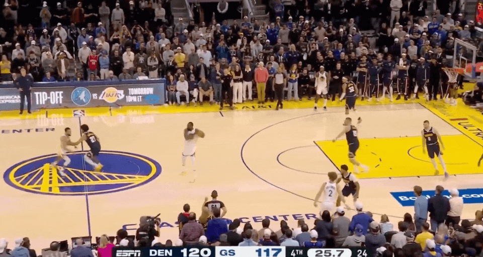 勇士隊(duì)庫(kù)里在對(duì)陣掘金隊(duì)的比賽中,比賽末段爆發(fā)讓球迷們?yōu)橹偪?/p>